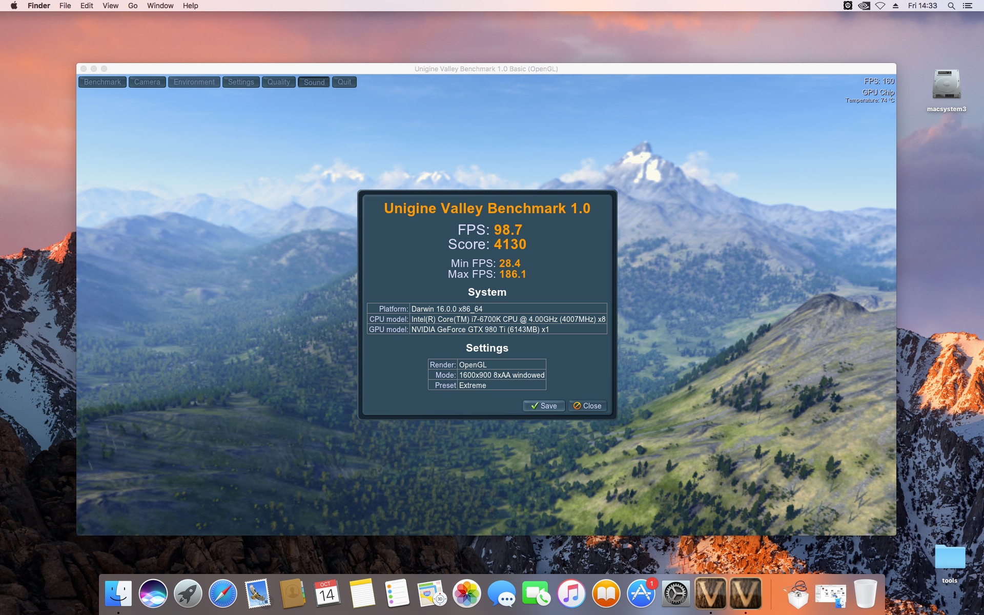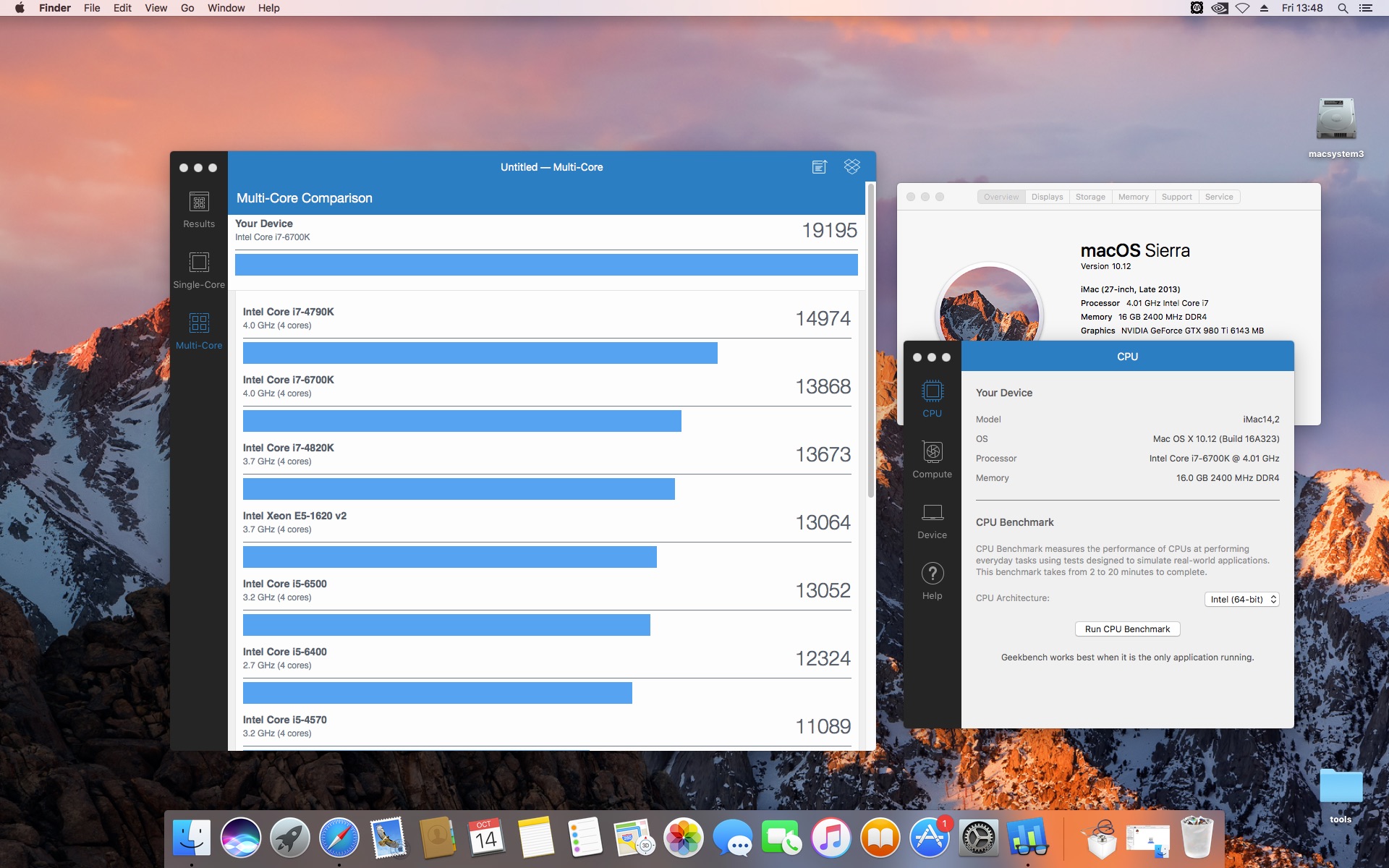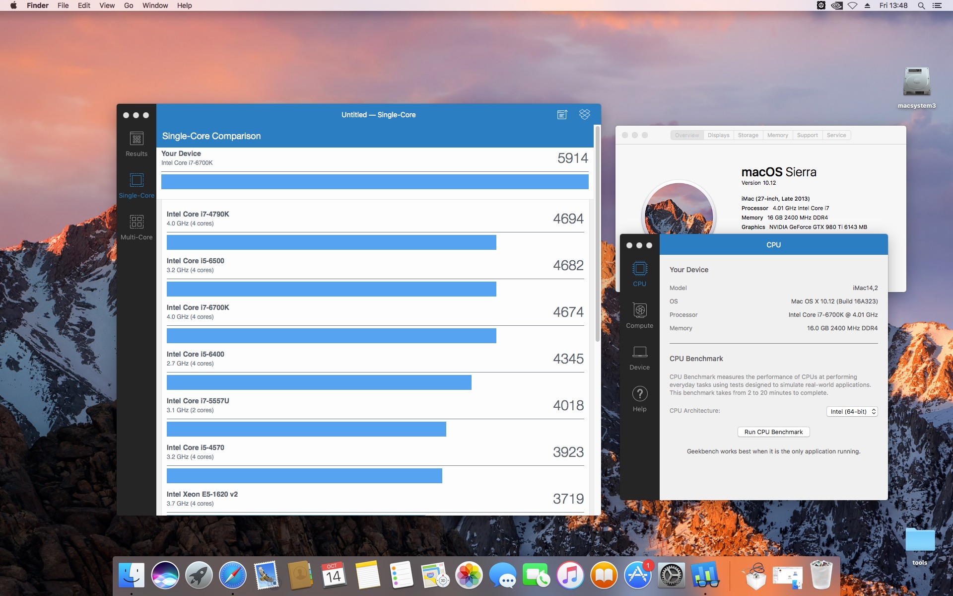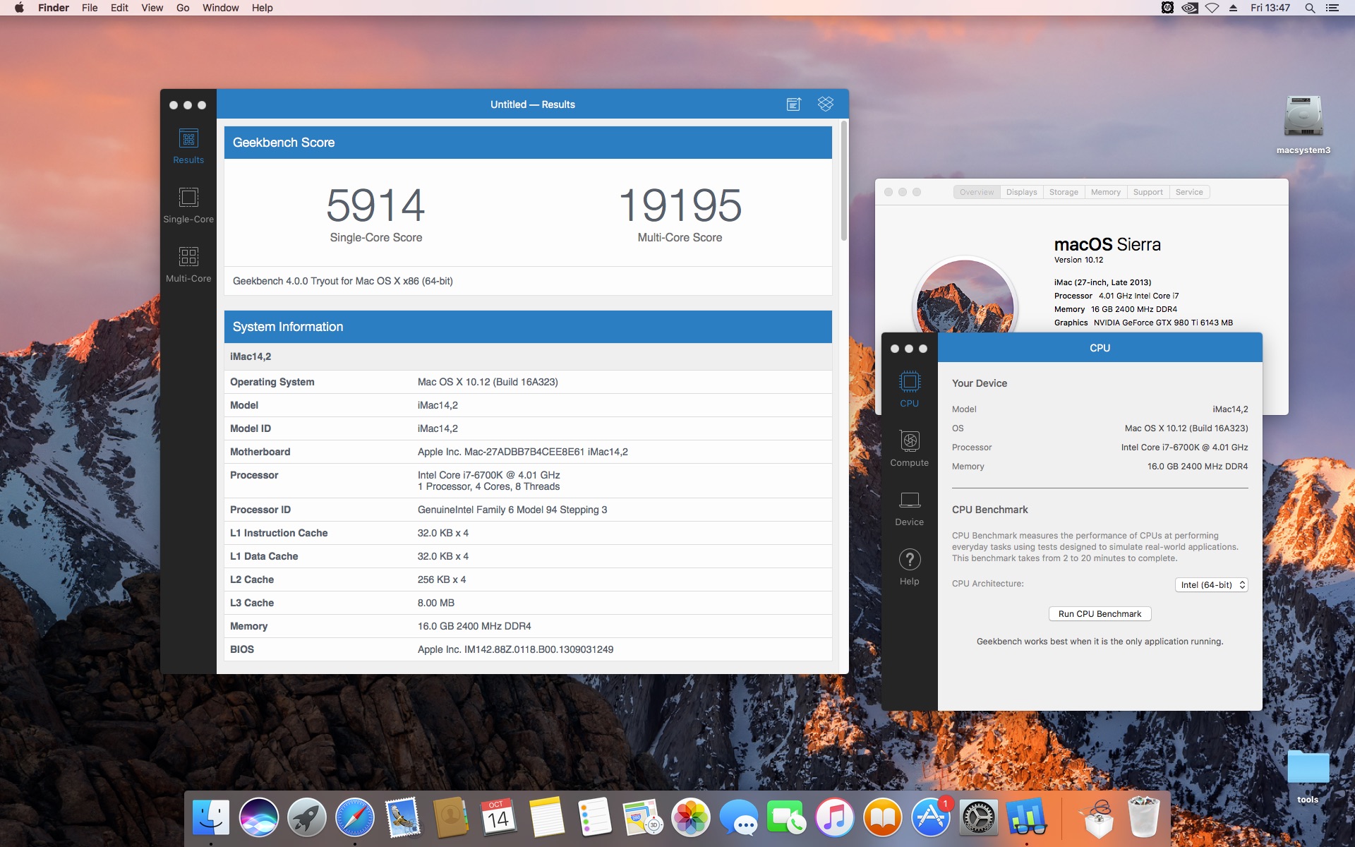 Geekbench 4.0. System operacyjny OS X Sierra 12.0.