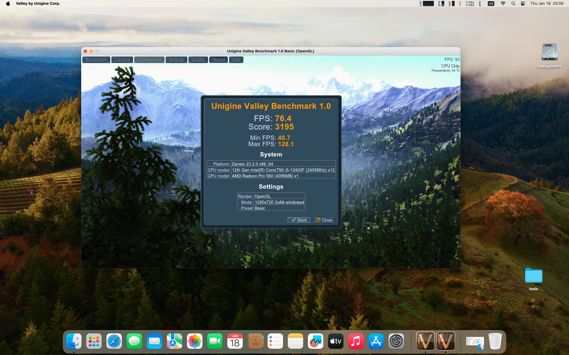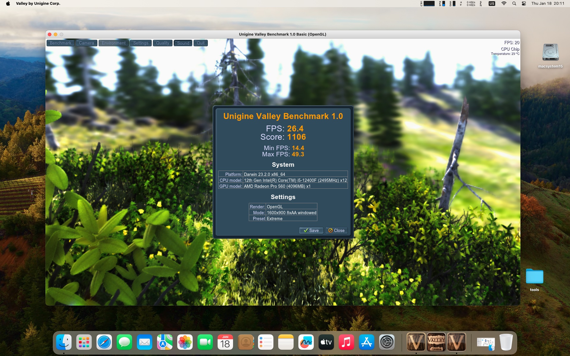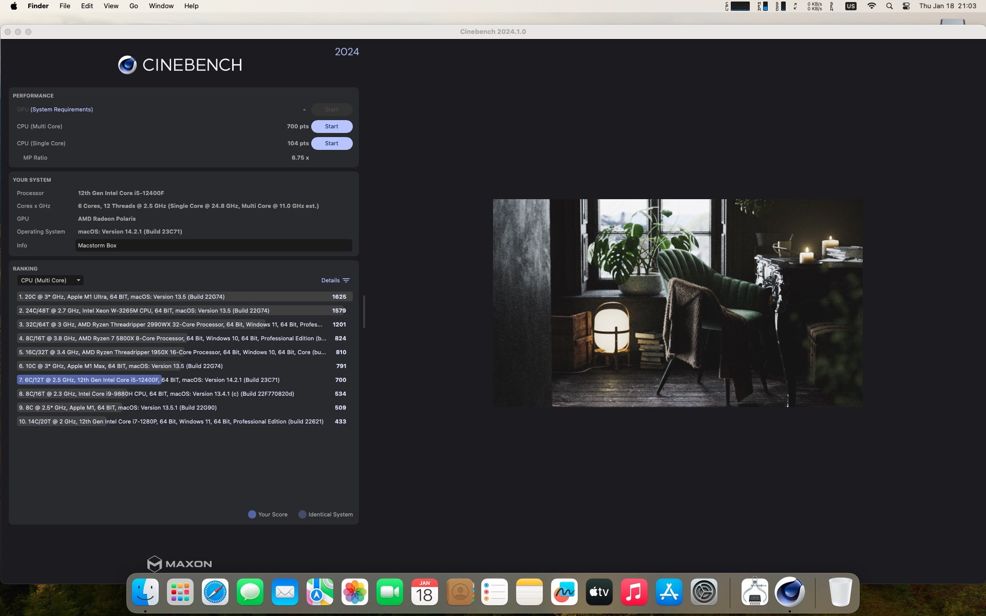 macOS Sonoma 14.2.1 . Procesor Intel Core i5-12400F .Karta graficzna Radeon RX 560 4 GB .Pamięć 16 GB DDR4 3600 MHz.