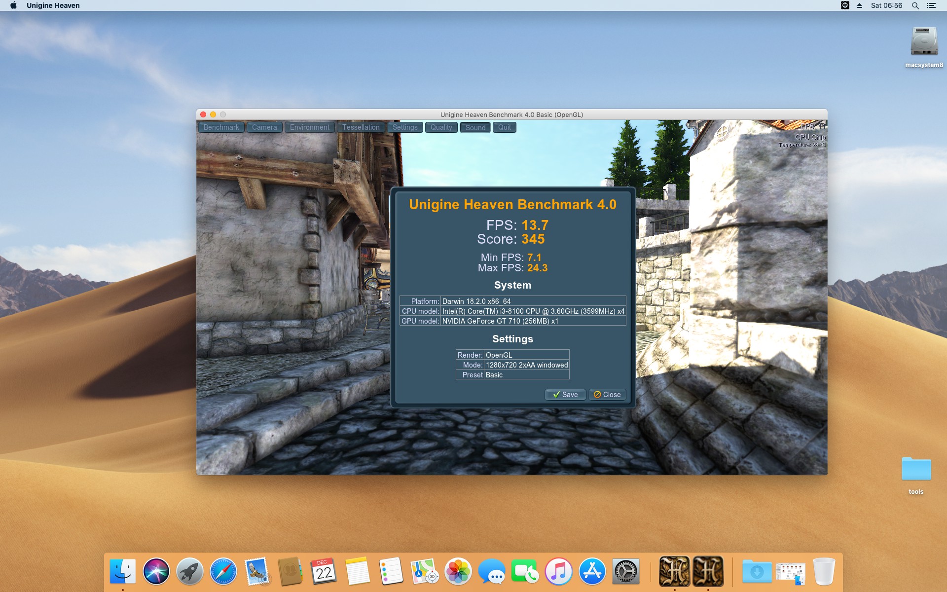 Unigine Heaven Benchmark 4.0 . Ustawienia 1280x720 Basic