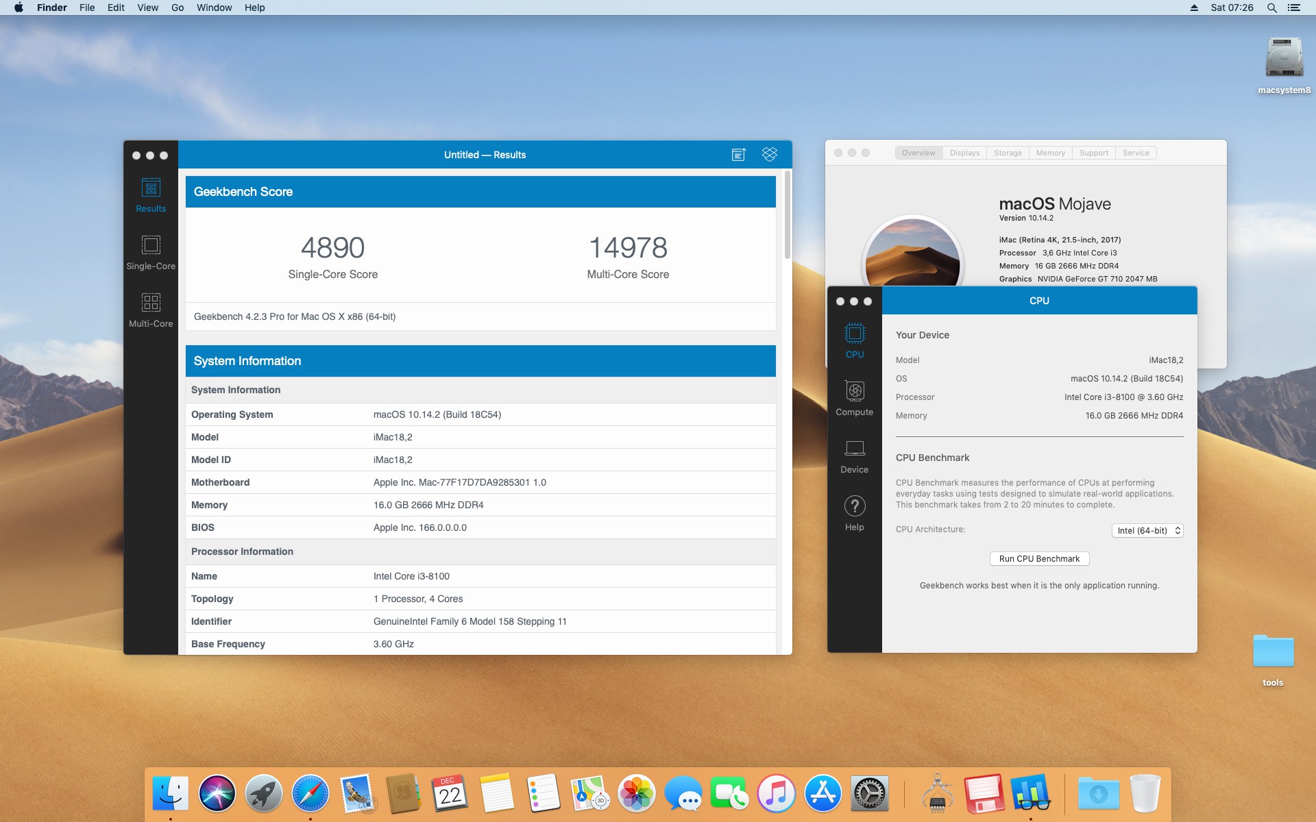 Test procesora Intel Core i3-8100 3.6 GHz . System