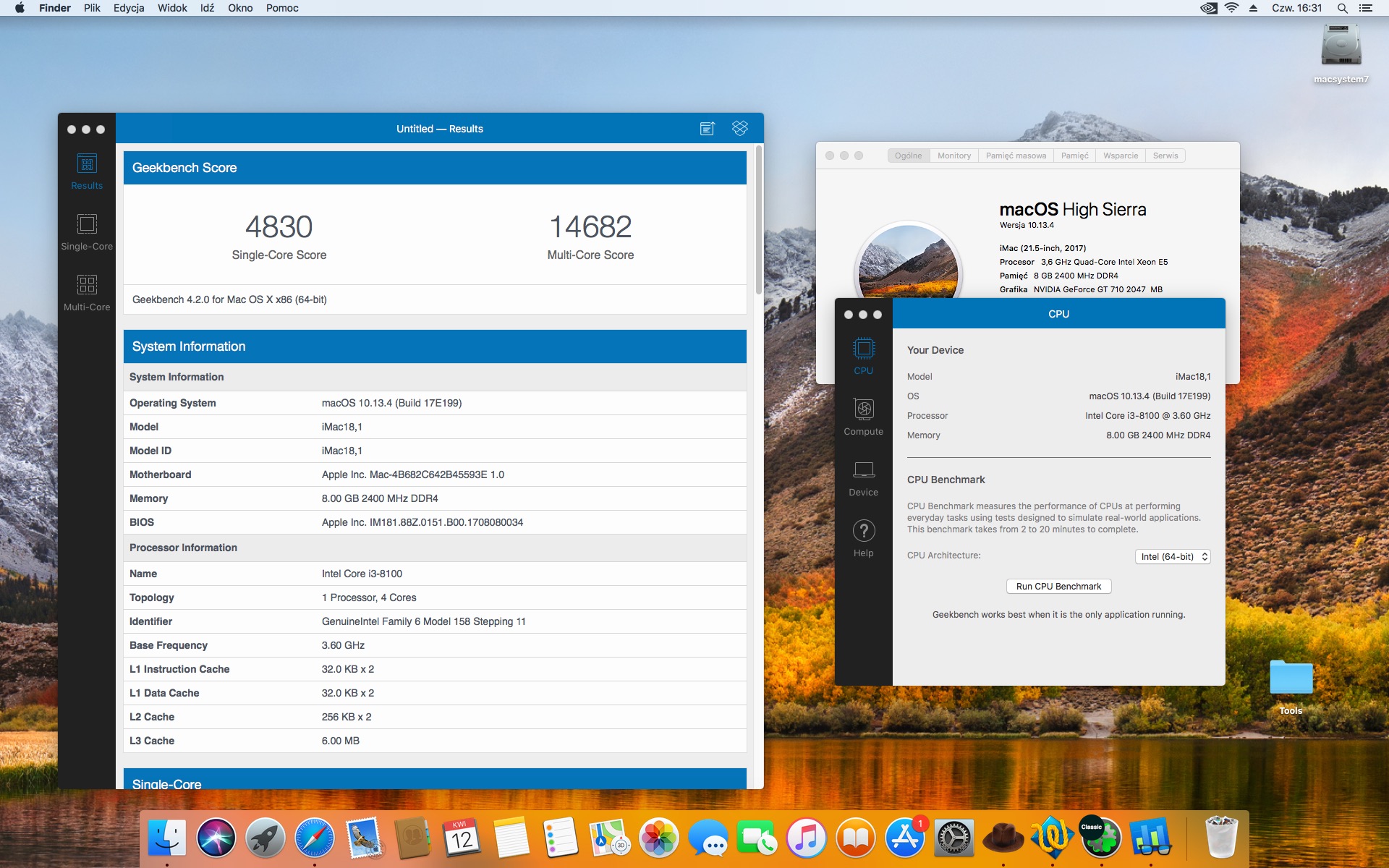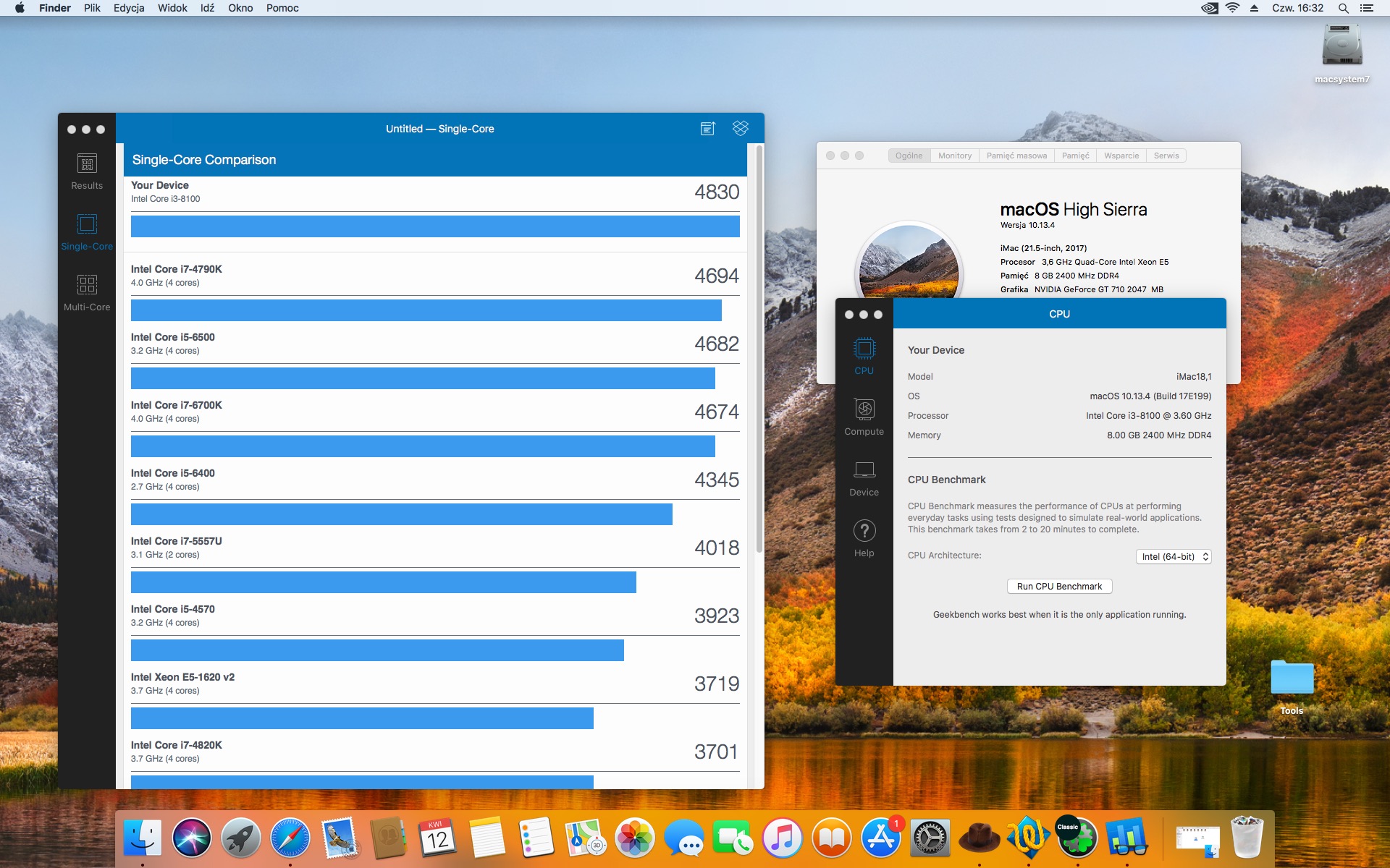 Geekbench 4.2.0. Tryb Single - Core.