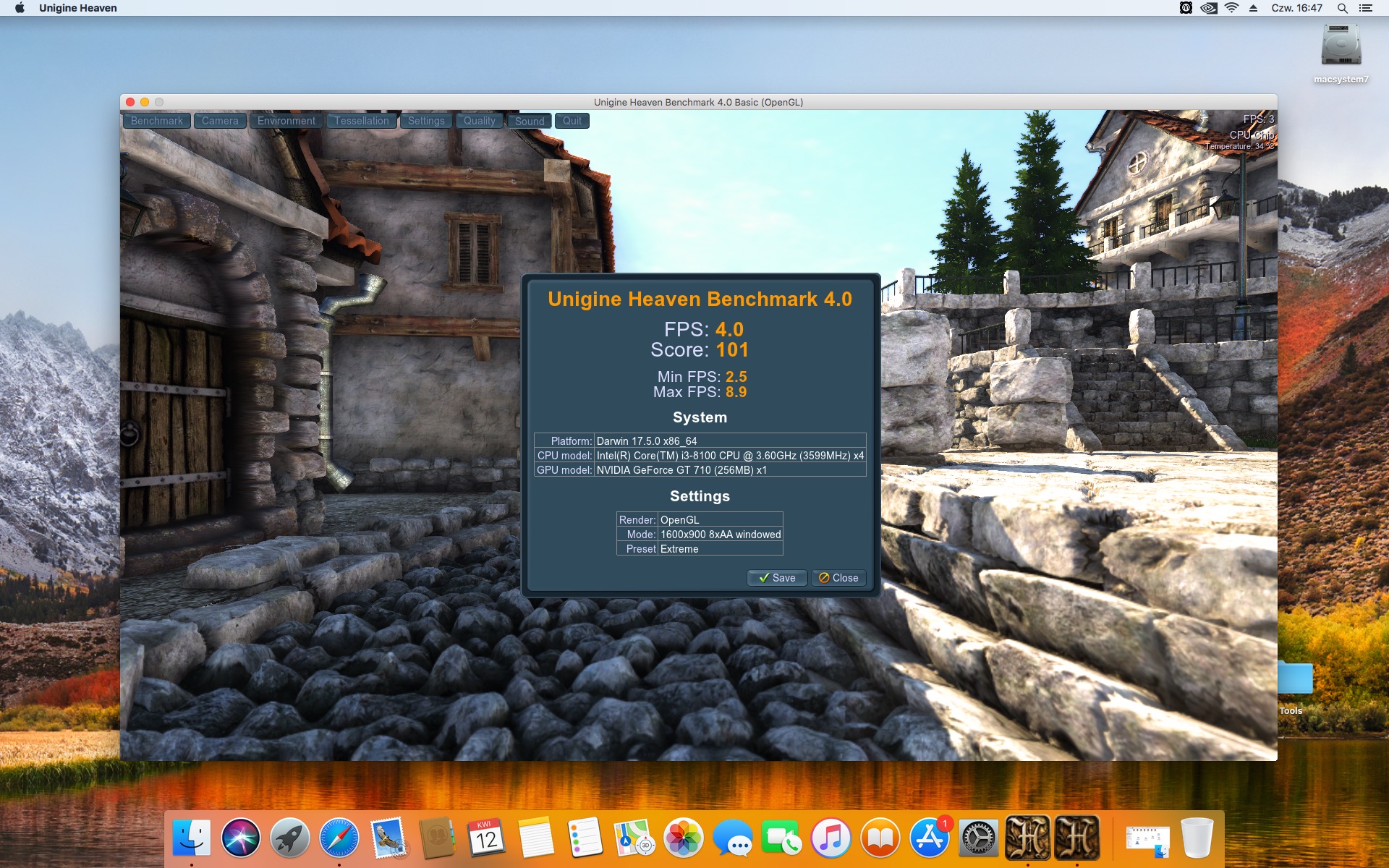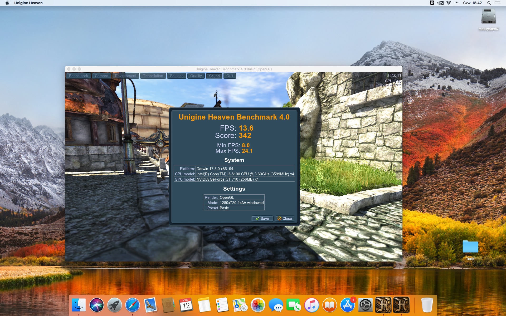 Unigine Heaven Benchmark 4.0 . Ustawienia 1280x720