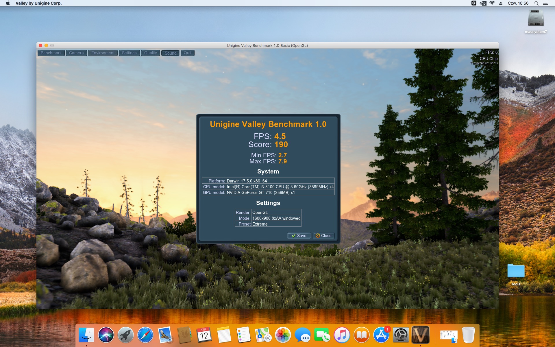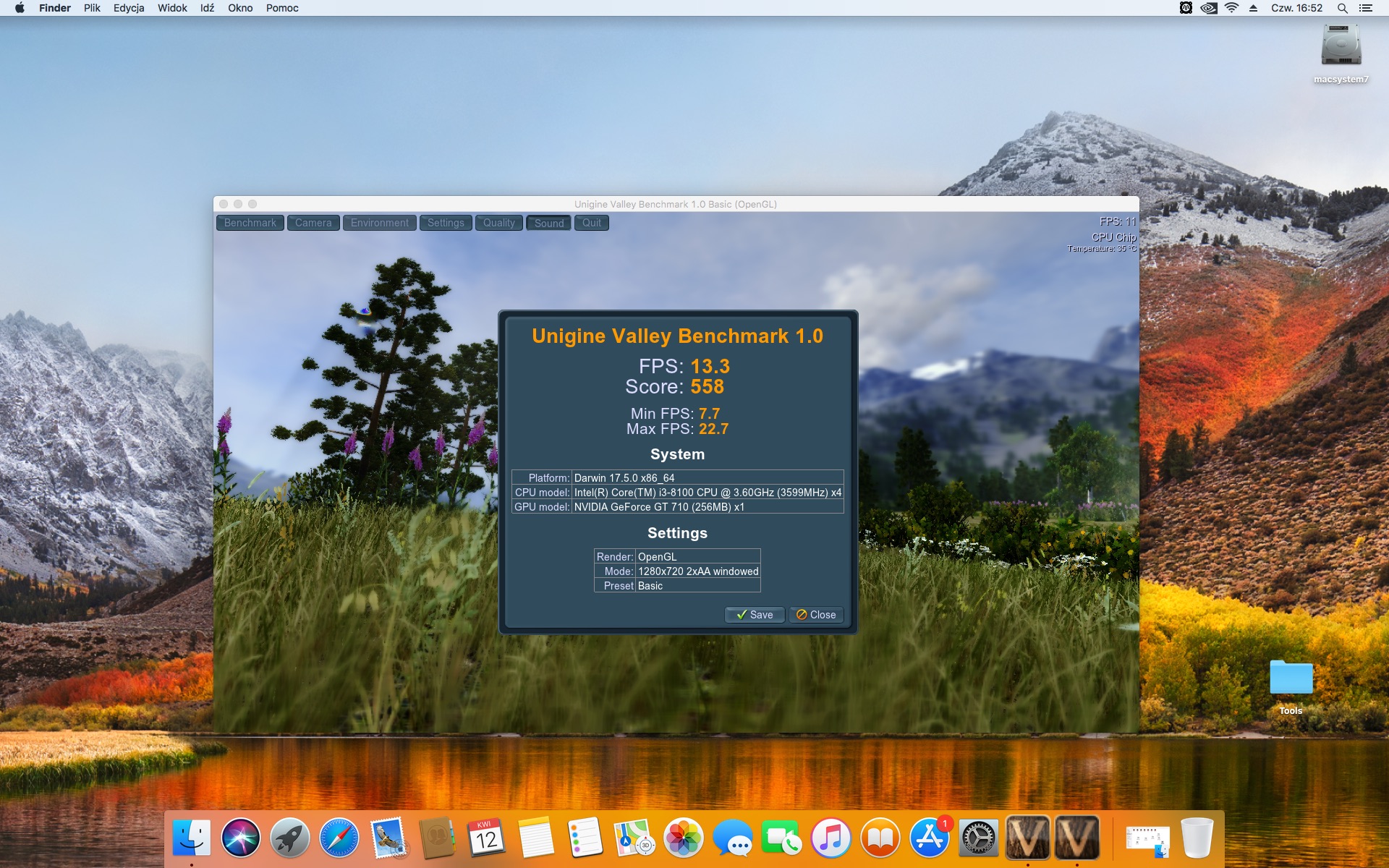 Unigine Valley Benchmarl 1.0. Ustawienia 1280x720 Basic.