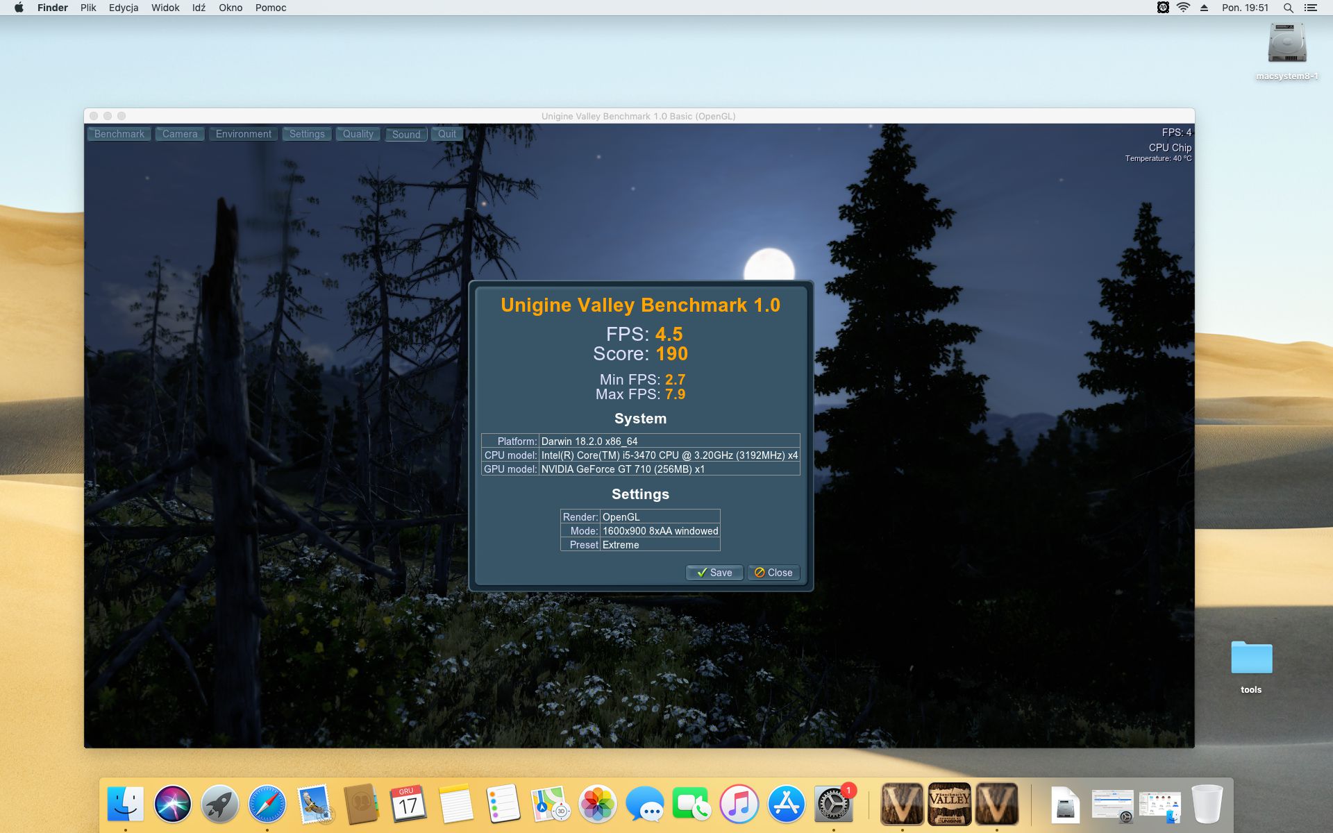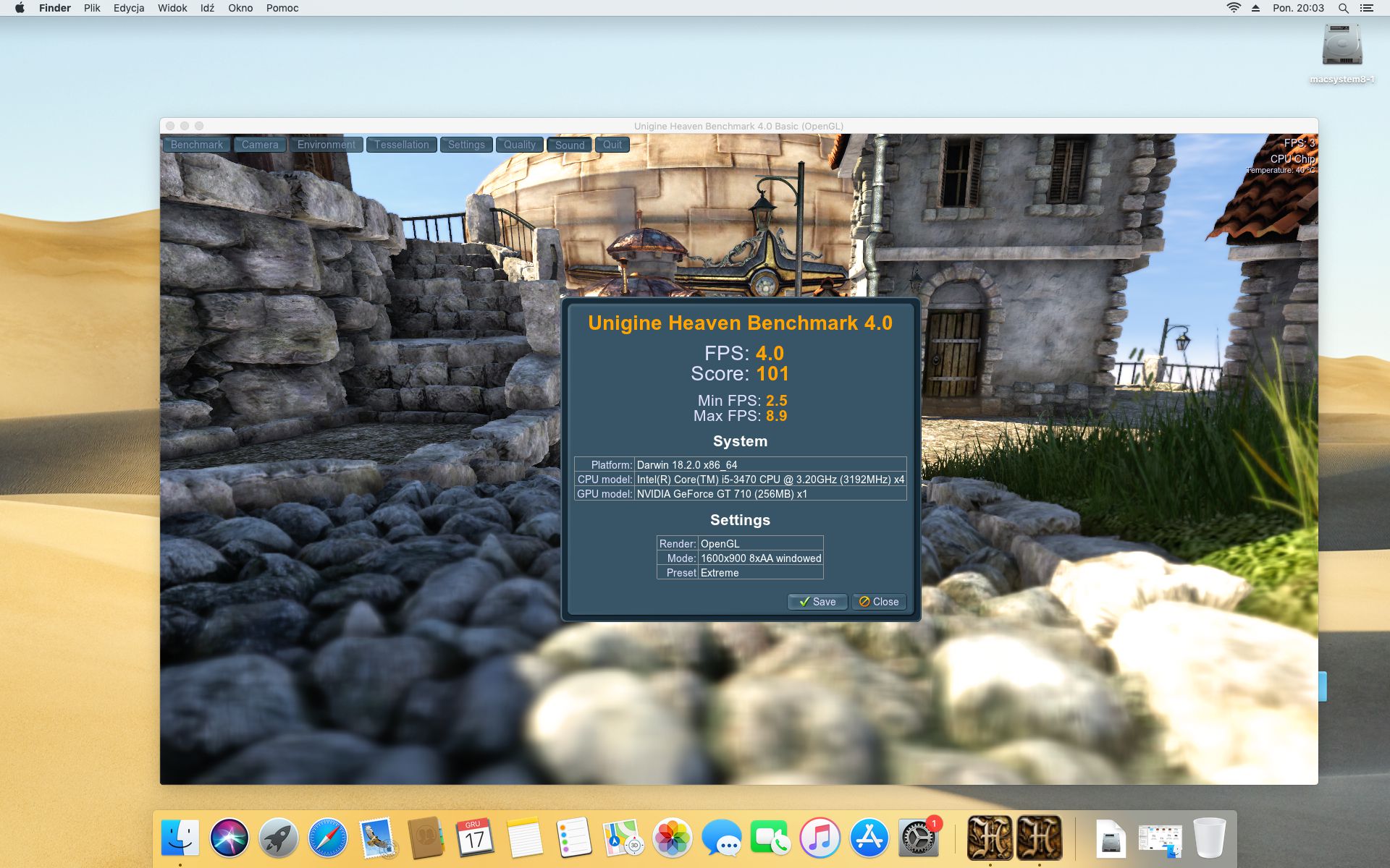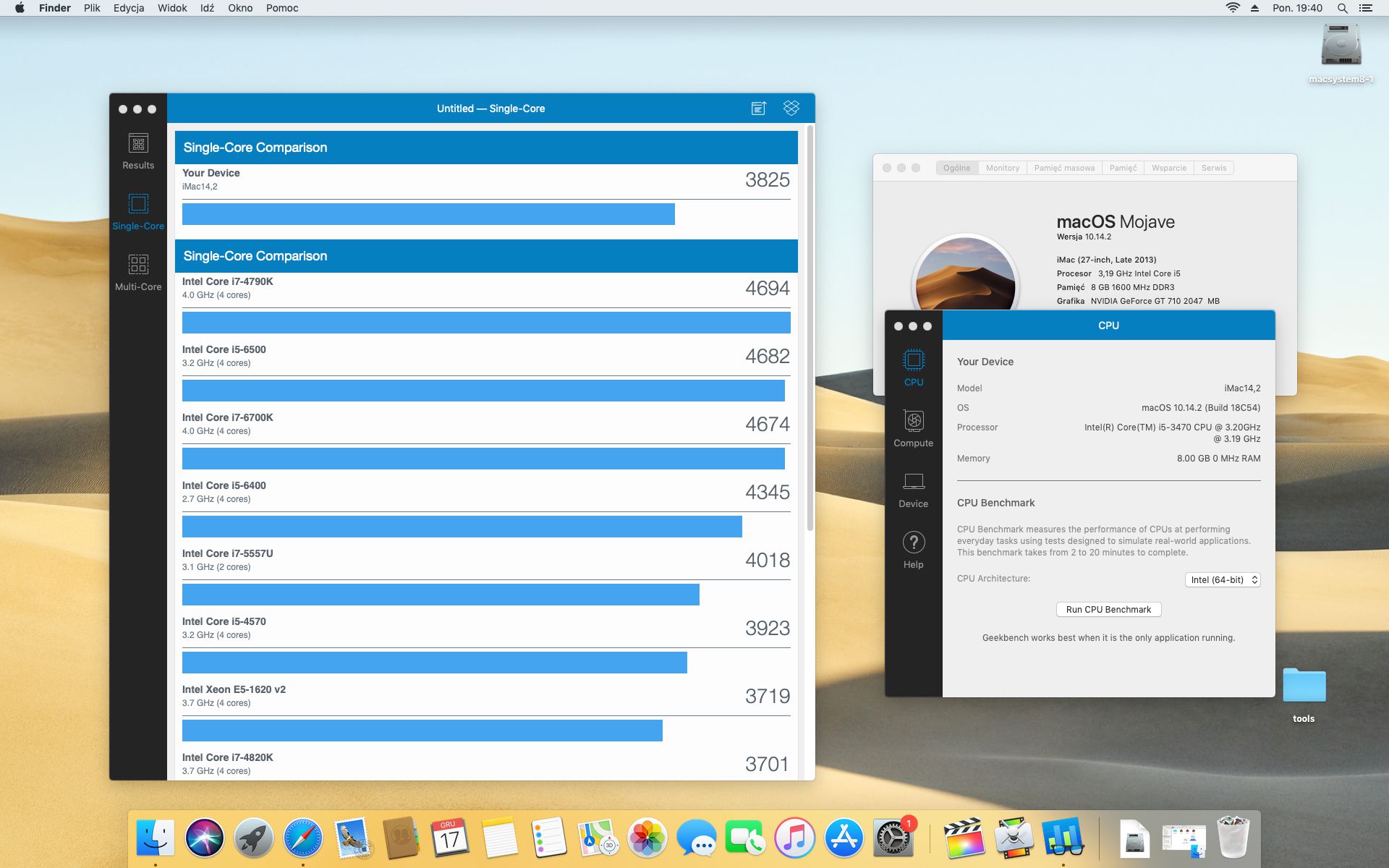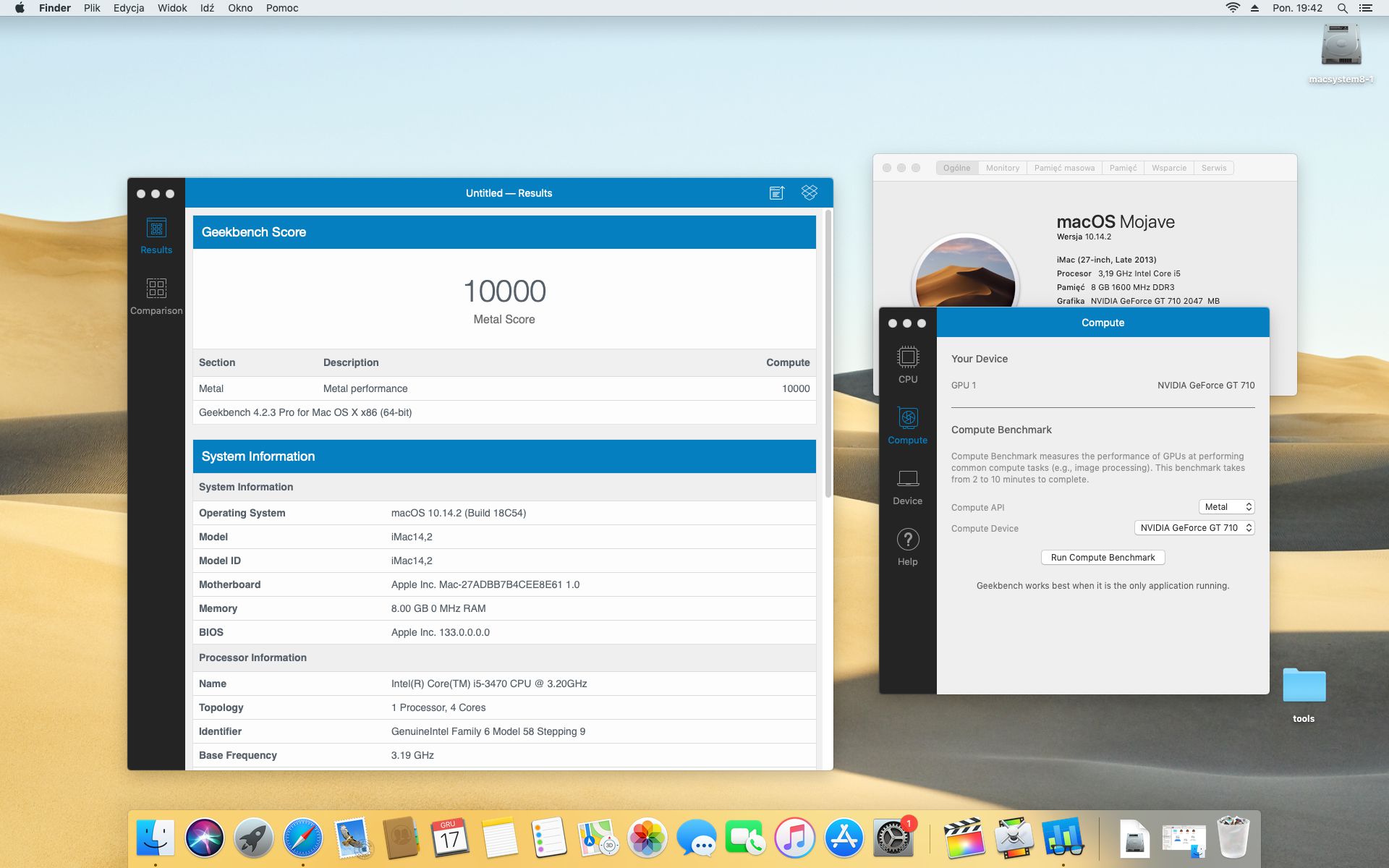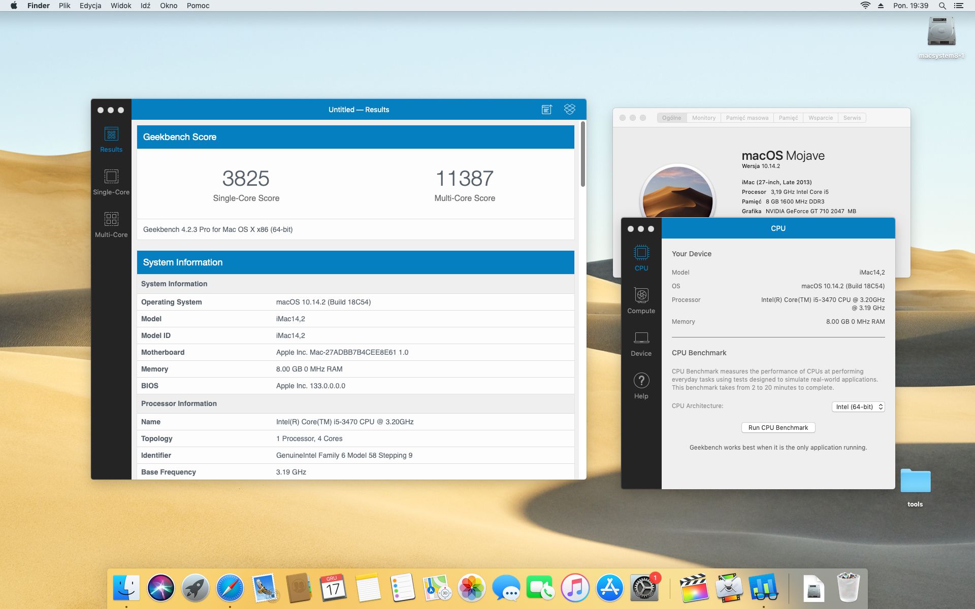 Geekbench 4.2.3 . System operacyjny MAC OS MOJAVE