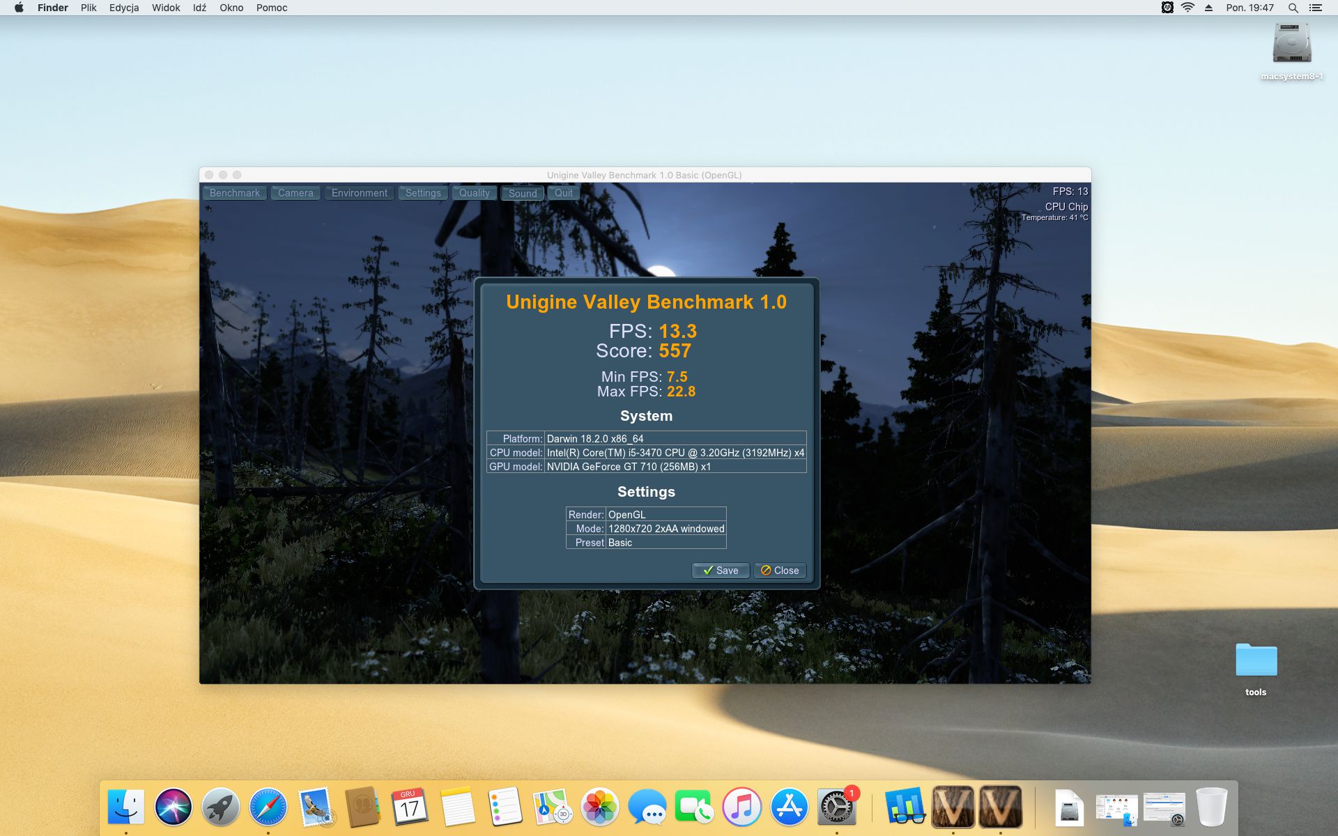 Unigine Valley Benchmark 1.0. Ustawienia 1280x720 Basic.