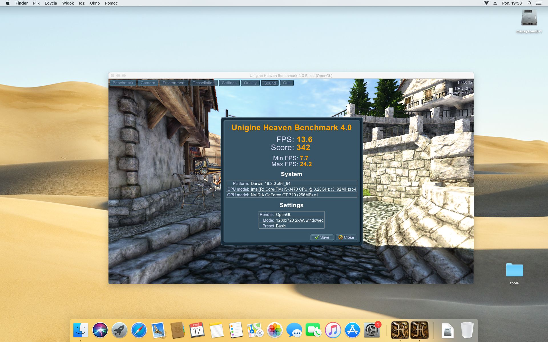 Unigine Heaven Benchmark 4.0. Ustawienia 1280x720 Basic