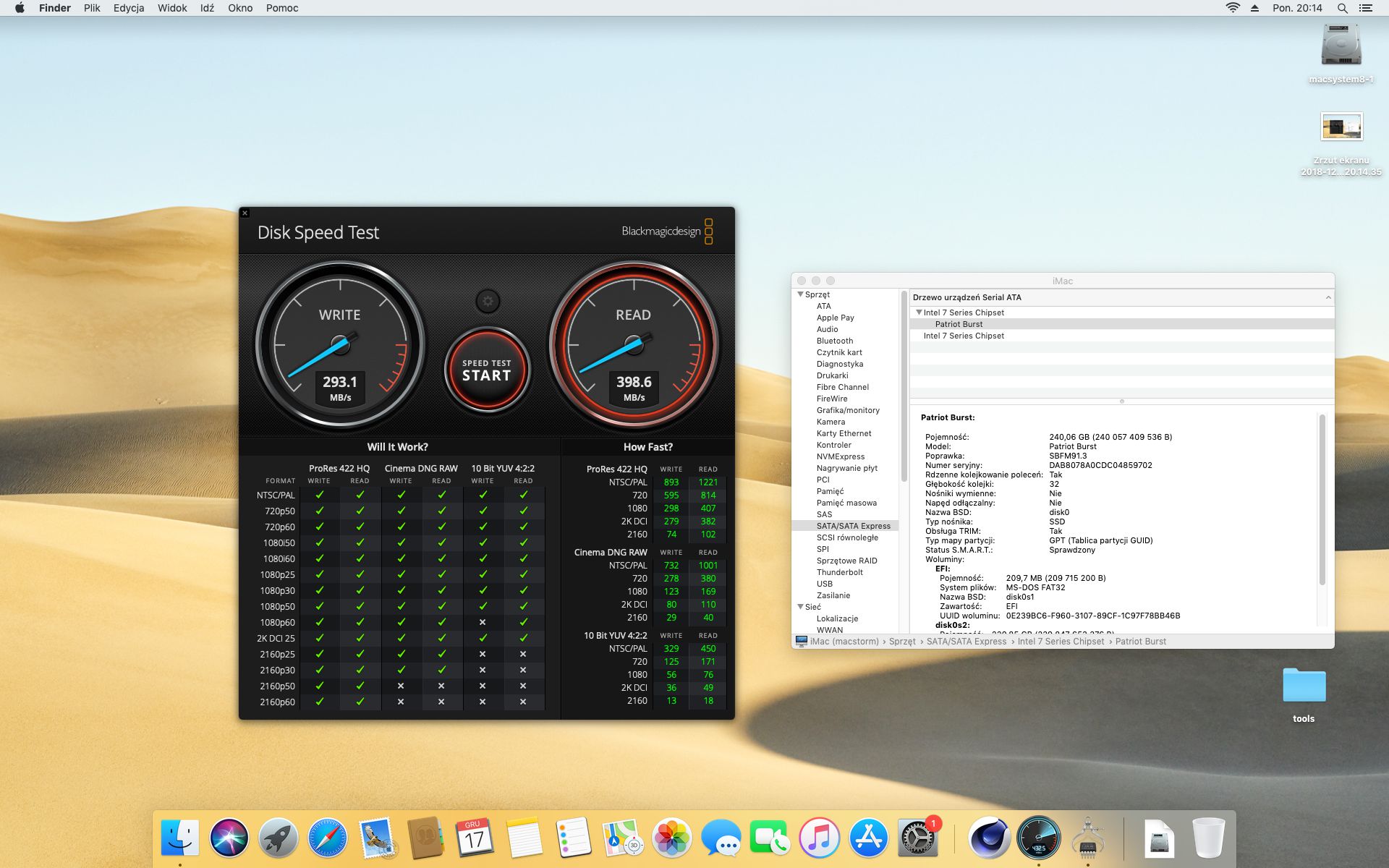 Test dysku SSD Patriot Burst 240 GB programem Disk